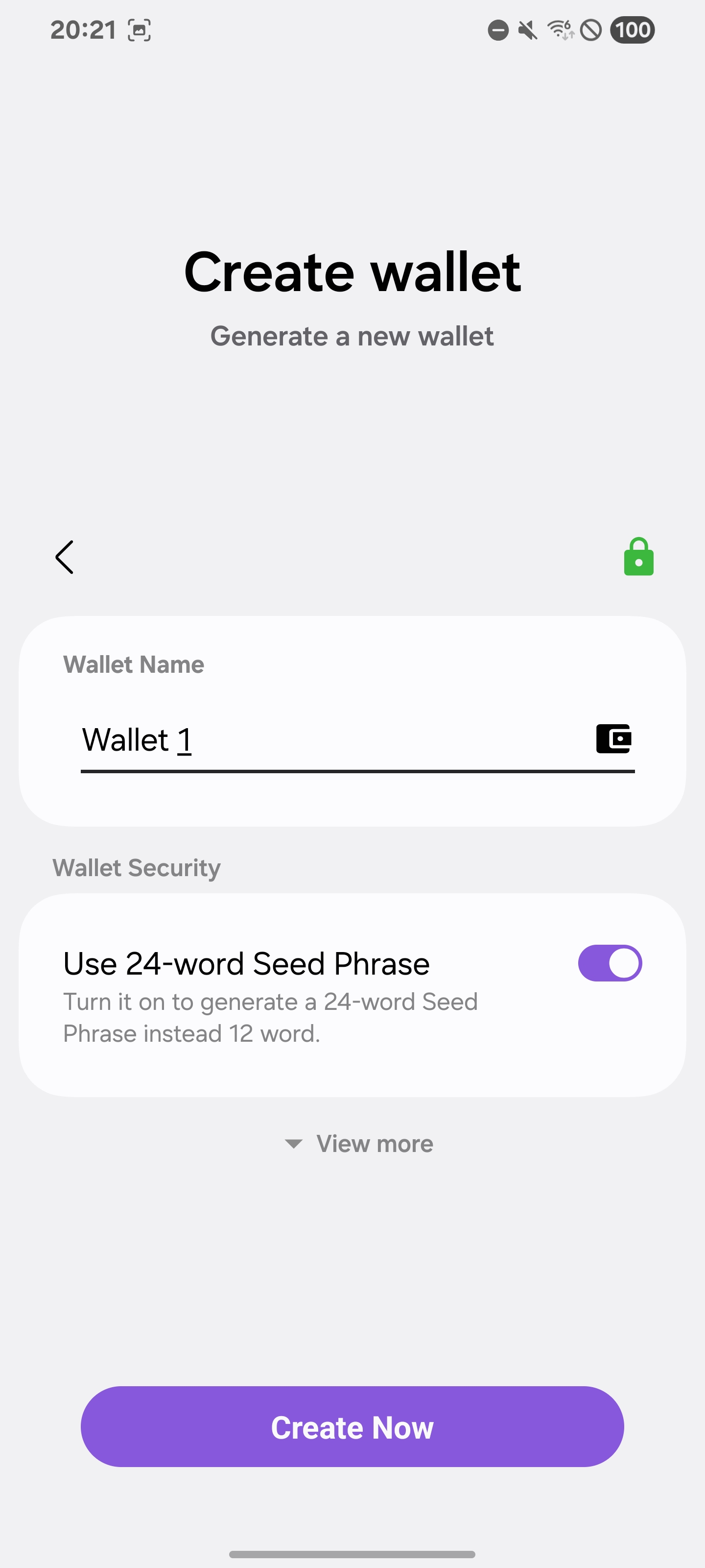 - Seed Phrase Options: Users can generate a 12- or 24-word seed phrase, providing full control over their funds and offering a secure way to recover their wallet.