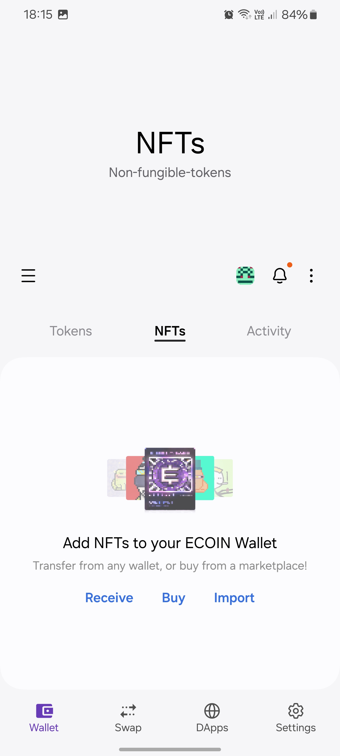 Ecoin Wallet provides full support for NFTs, allowing users to showcase, receive, and transfer digital collectibles seamlessly. With built-in auto-detection, managing your NFTs has never been easier.