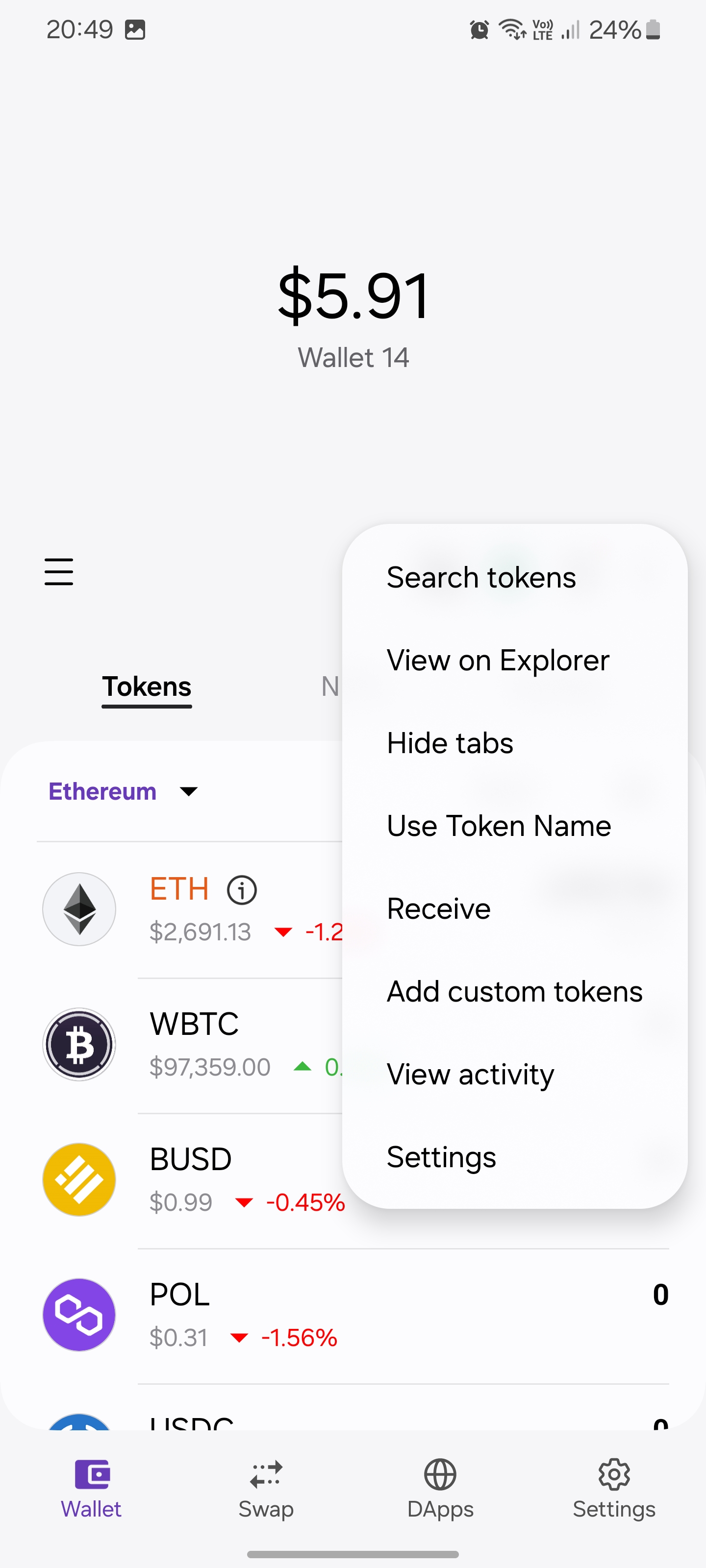 With the Price Source from Pool / CoinGecko integration, Ecoin Wallet ensures accurate and real-time token prices, whether your token is listed on CoinGecko or sourced directly from liquidity pools.