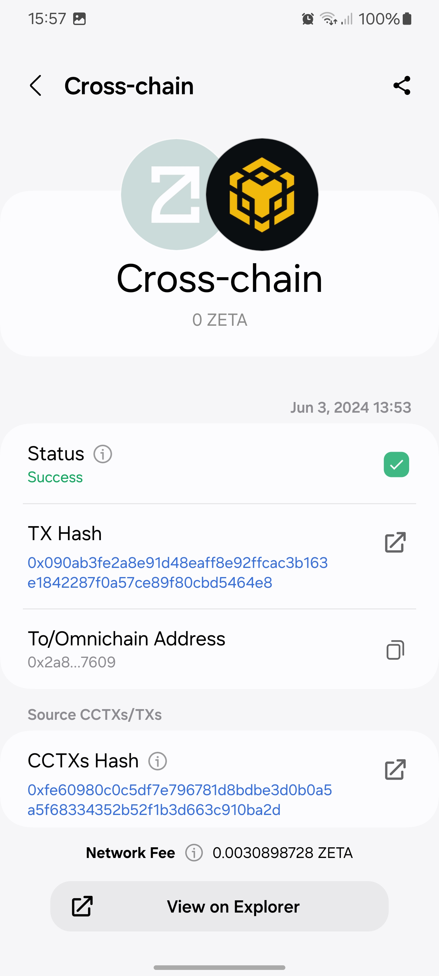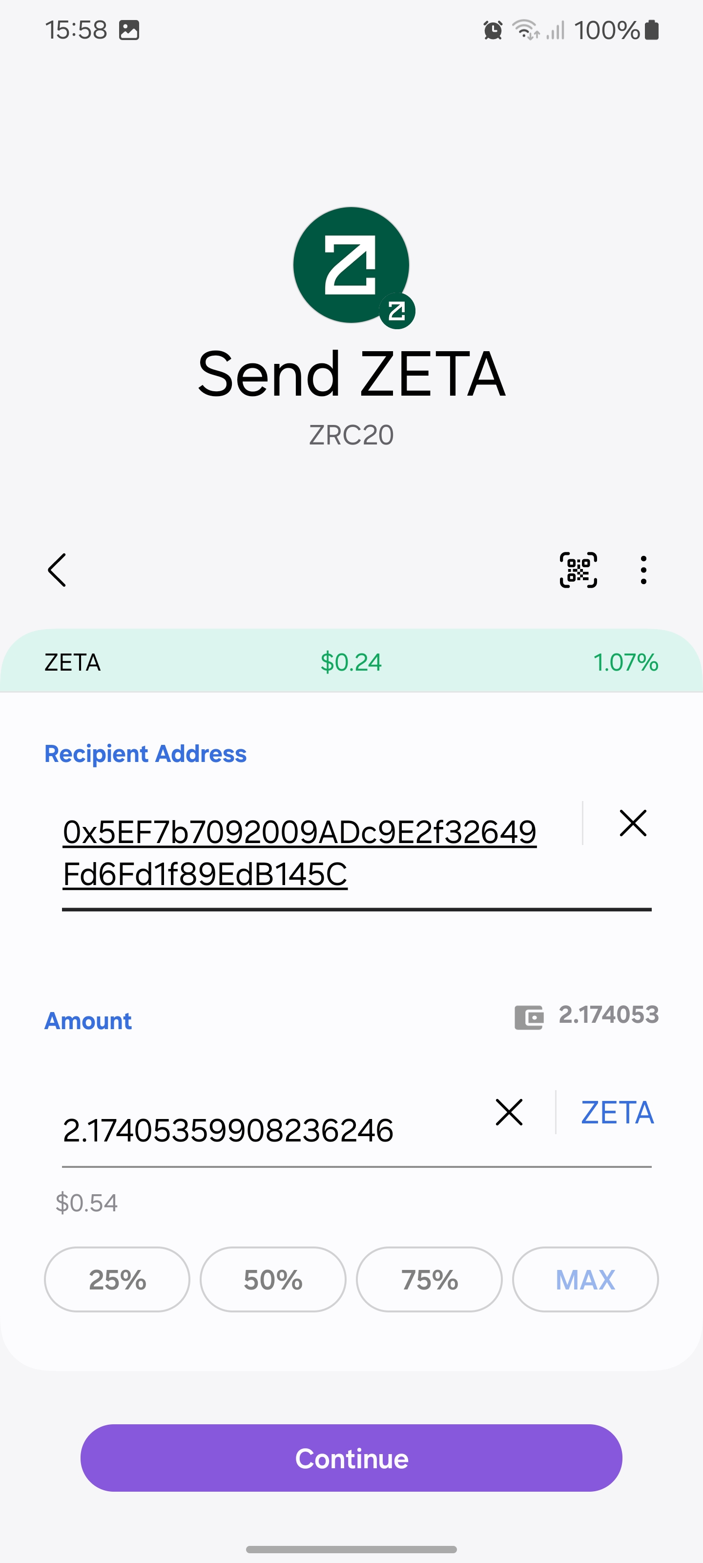 - ZRC20 Token Support: You can receive any ZRC20 tokens directly to the same ZetaChain address, making it easy to manage all your tokens in one place.