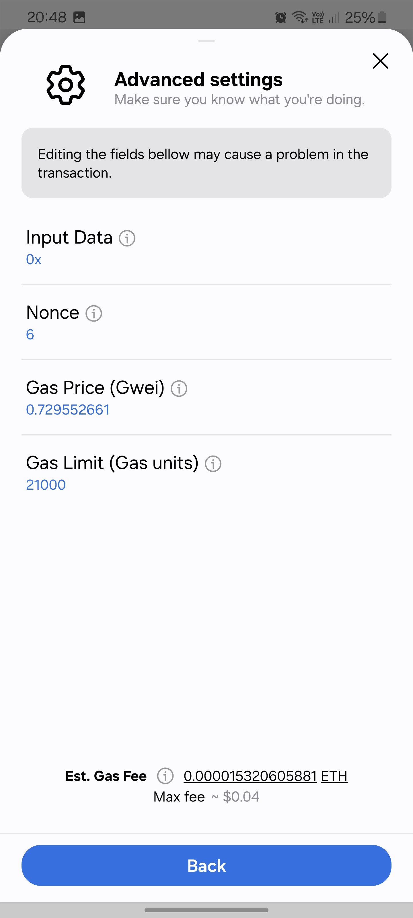 - Gas Price: View and adjust the gas price based on network congestion to control transaction speed and cost.