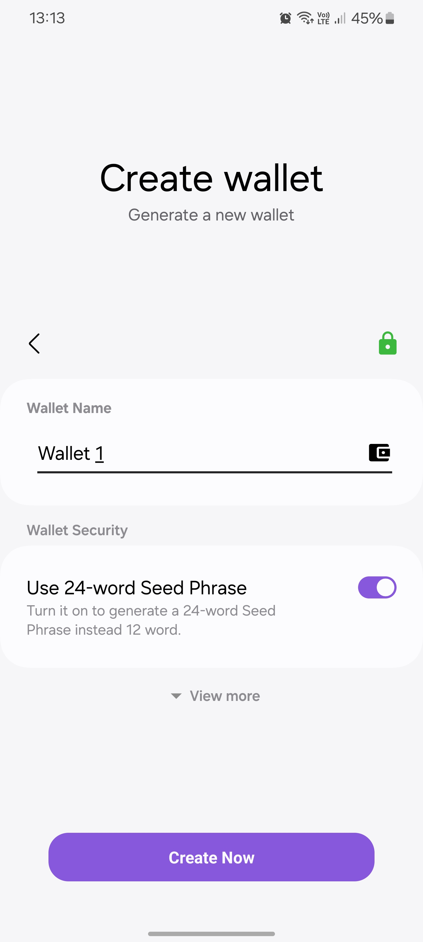 - Seed Phrase Options: Users can generate a 12- or 24-word seed phrase, providing full control over their funds and offering a secure way to recover their wallet.